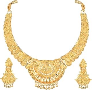 Shining Diva Fashion Latest Choker Design Necklace Set For Women Traditional One Gram Gold Plated Jewellery Set for Women (Golden) (11534s)